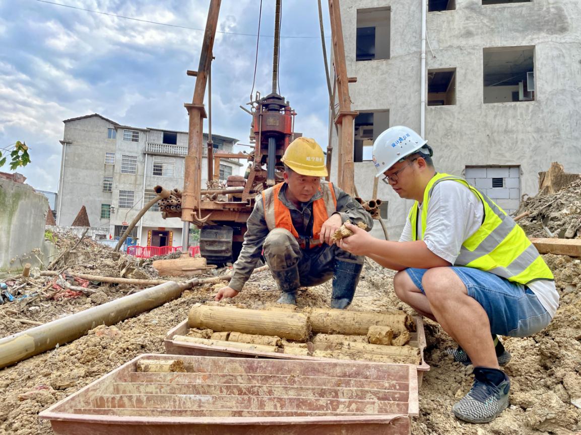 記得剛畢業(yè)第一個(gè)項(xiàng)目是咸寧市傳媒大廈項(xiàng)目,其建筑高度116.9米,為咸寧第一高樓。傳媒大廈正位于旗鼓垴斷裂西側(cè),地質(zhì)條件復(fù)雜,礫巖、石灰?guī)r、斷層泥錯(cuò)雜分布,巖層面起伏大、溶洞多。他從現(xiàn)場(chǎng)描述員做起,天天在工地上寫編錄,晴天一身灰,雨天一身濕。和工人同出同歸,吃住都在項(xiàng)目上。