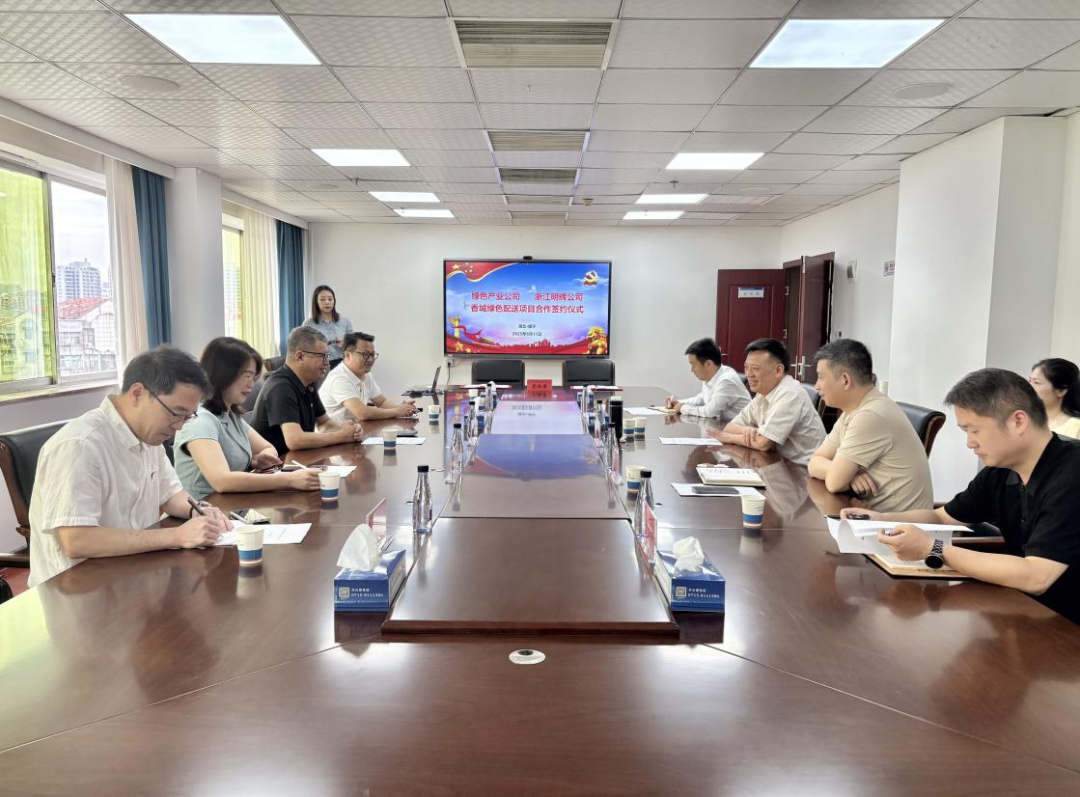 6月11日上午,綠產(chǎn)公司與浙江明輝公司在咸寧城發(fā)集團總部舉行香城綠色配送項目合作簽約儀式。浙江明輝公司董事長何云峰、常務(wù)副總程欣欣,咸寧城發(fā)集團黨委副書記、總經(jīng)理饒軍,總經(jīng)理助理、綠產(chǎn)公司董事長劉毅等雙方高層代表出席活動,共同見證這一重要時刻。